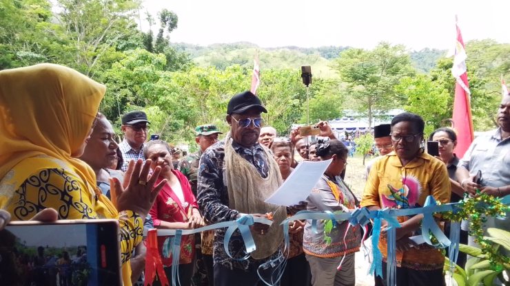 Bupati Jayapura, Yunus Wonda saat meresmikan pembangunan dan rehabilitasi sejumlah fasilitas pendidikan. (Foto: Cornelia Mudumi)