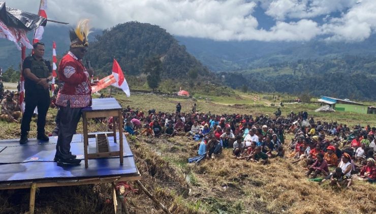 “Di kampung, bapak ibu bisa berkebun, beternak babi, membangun keturunan, dan hidup tenang. Anak-anak ini nanti saya sekolahkan, supaya kelak mereka bisa menjadi pemimpin di tanah ini,” ujar Meki Nawipa di hadapan pengungsi di Distrik Gome.