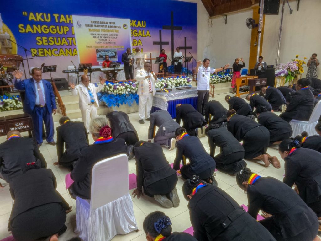 SERUI, HarianTerbaruPapua.com – Sukacita besar memenuhi Gedung Gereja GPdI Ekklesia Serui Kota, Rabu (22/10/2025), ketika dilangsungkan Ibadah Penamatan Sekolah Alkitab Waropen Kelas Eksekutif Serui Tingkat I dan II Tahun Ajaran 2025.