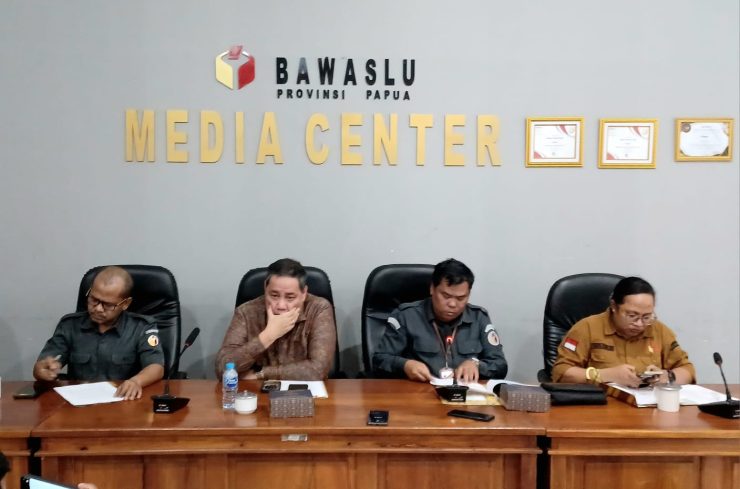 Bawaslu Papua saat menggelar konferensi pers di kantor Bawaslu Papua, Senin (04/8/2025). Foto: Darul Muttaqin