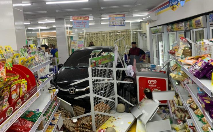 Melihat mobil bergerak, Herlan langsung berusaha masuk kembali ke dalam mobil untuk menghentikan laju kendaraan. Namun, karena panik, ia keliru menginjak pedal gas alih-alih pedal rem. “Mobil pun terus melaju, menabrak dua sepeda motor Honda Beat yang terparkir dan menerobos masuk ke dalam toko,” jelasnya.