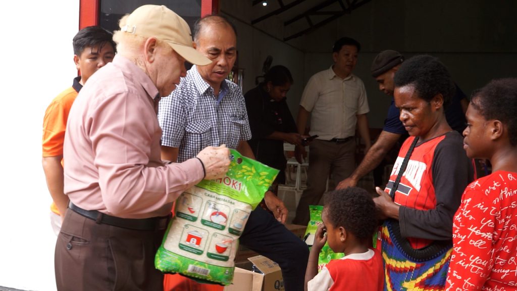 Pendiri JAKOP, Pdt. MPA. Maury saat menyalurkan langsung Paket Sembako kepada Petugas Kebersihan di Kota Jayapura. (Foto: Darul Muttaqin)