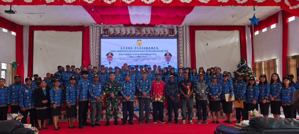 PUNCAK, HarianTerbaruPapua.com – Bupati Puncak, Elvis Tabuni, secara resmi menyerahkan Surat Keputusan (SK) kepada 314 Pegawai Negeri Sipil (PNS) formasi tahun 2021. Prosesi penyerahan yang diinisiasi oleh Badan Kepegawaian dan Pengembangan Sumber Daya Manusia (BKPSDM) Kabupaten Puncak, berlangsung khidmat di Aula Negelar, Kamis (19/2/2026).